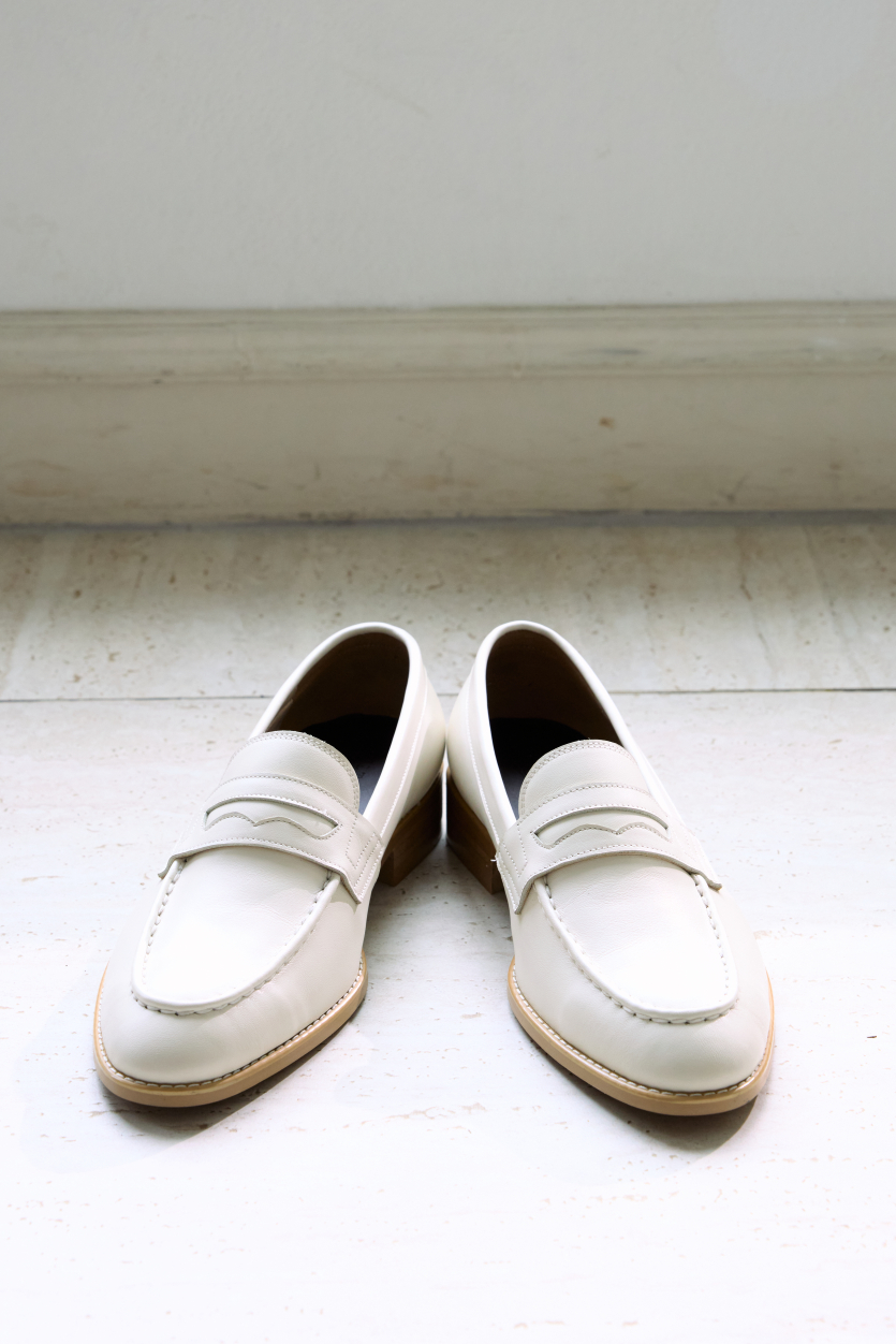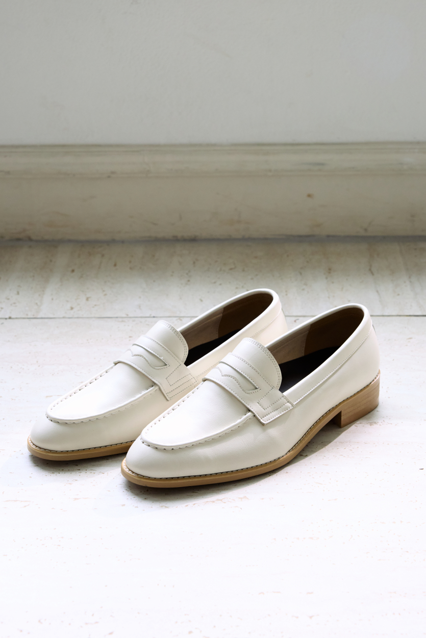 HANDMADE SHOES 최고급 이태리 베지터블 가죽 페니 로퍼 화이트